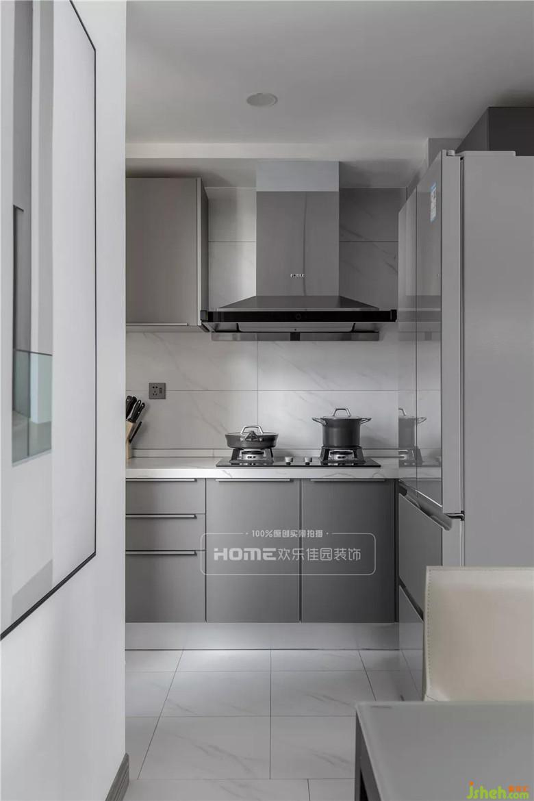 厨房与餐厅共通,增加两个空间的互动性,又让原本狭小的两个空间得到释放,沉稳自然的木饰面板,浅色基底的自然光线,一副生活状态的画面感在脑海里油然而生。