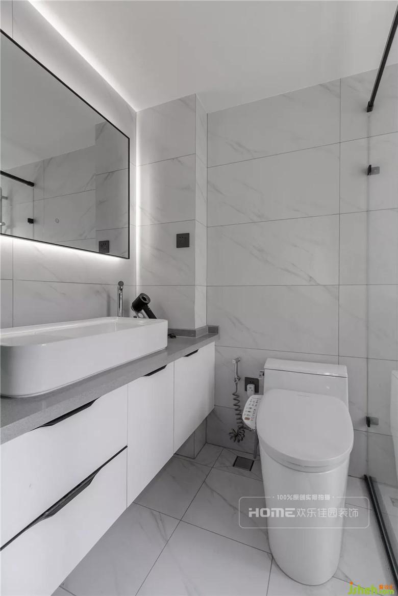 悬空式的浴室柜,方便站立的同时避免柜体受潮,兼具清洁功能和除臭功能的智能马桶,半开放式的干湿分离,省去了繁琐的装饰,更多的是注重实用功能,对品质的不将就,拉升空间的颜值。