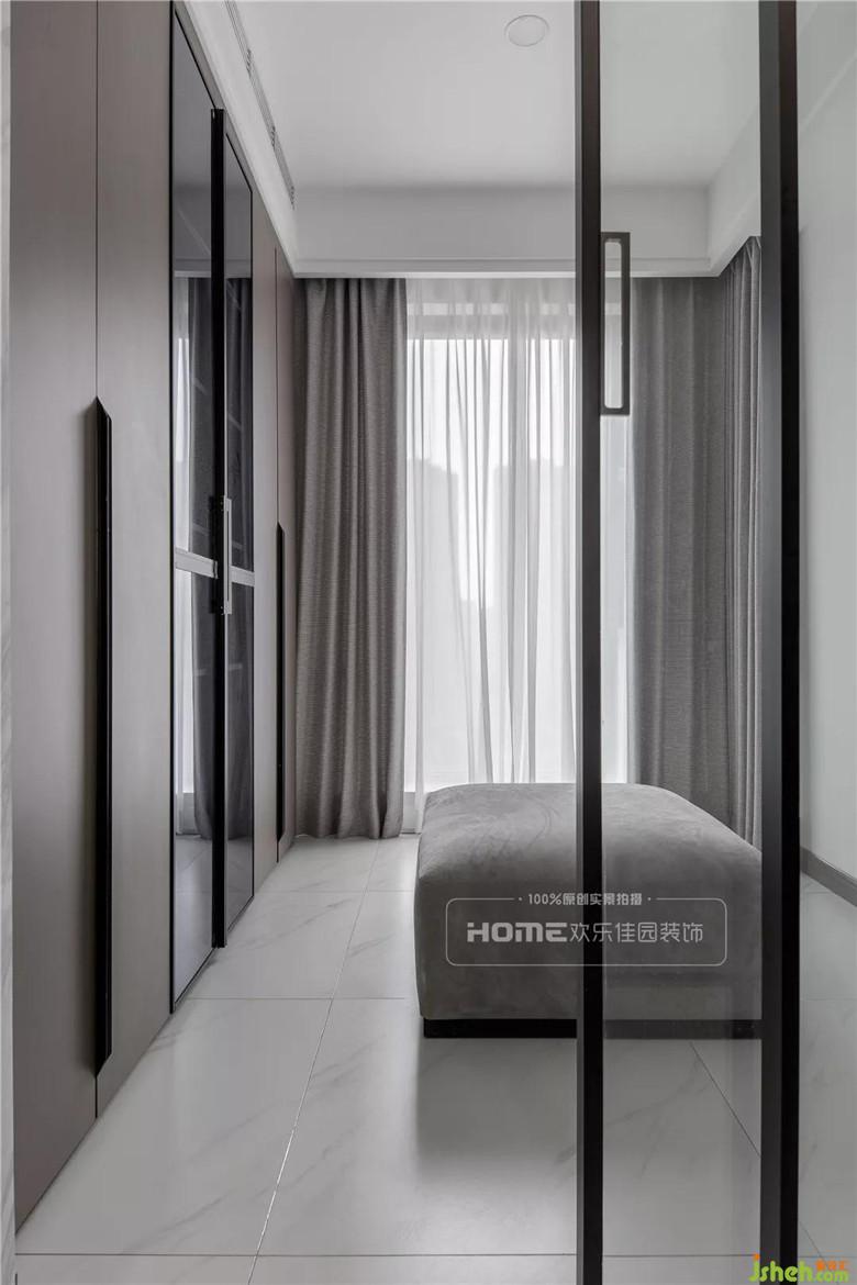 套三改套二,为的就是这个独立的步入式更衣间,以玻璃为隔,通透又自然,配上一张换鞋沙发,贴心又便利,无法拒绝的卡其色,知性又冷静,流露出一室的舒适与轻松...