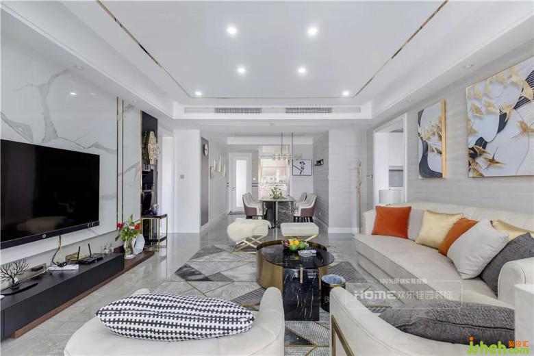 以轻奢为设计基调,石材、金属线条、特殊玻璃等材质灵活运用其中,空间中搭配吸睛的橘色、睿智的蓝色,深与浅的色调平衡的刚刚好,层次多变的微妙感,是H先生一家想要的最初关于家的想象。