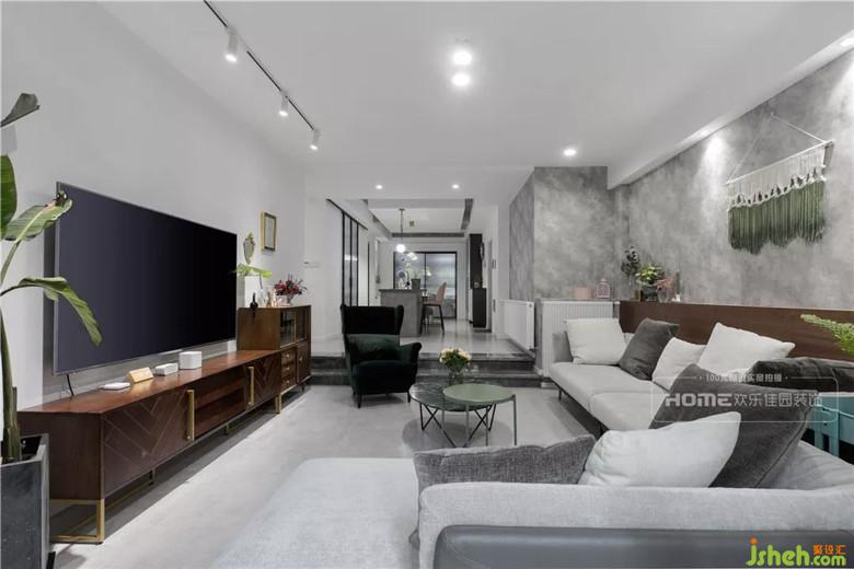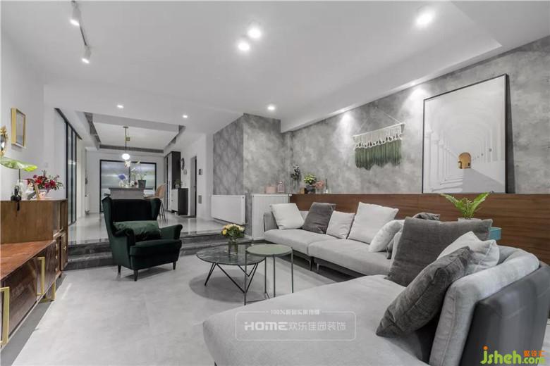 整个客厅以灰色为主调,从墙纸、沙发到地面,不同程度的灰色,搭配明亮的顶灯,仿佛被阳光包裹。因为客户的职业是花艺,所以家里的各个角落,随处可见插花与绿植,家居的自然感受,享受属于自己的慵懒时光。