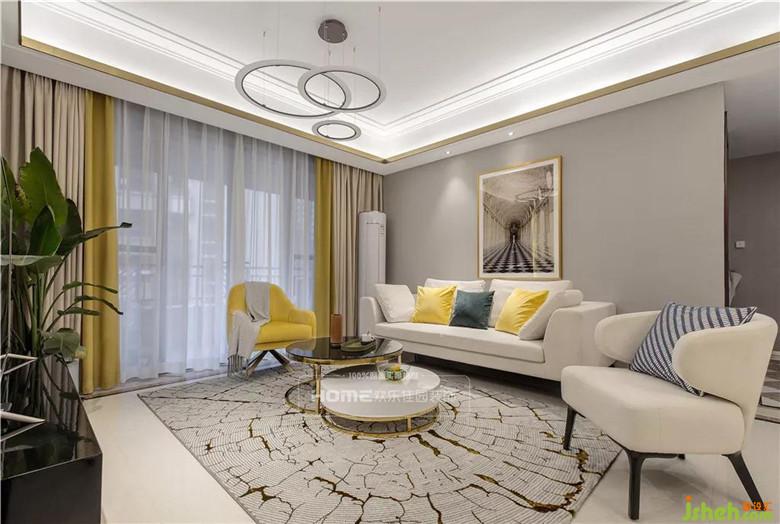 在这个基础上,我们的软装设计师选择了暖色系中比较有代表性的一个暖黄色为主色调,局部搭配米色系来调和空间的颜色,这样做的目的一是为了衔接原房硬装的调子,二是融入软装的东西柔和整个空间,让空间的软装和硬装相互协调。