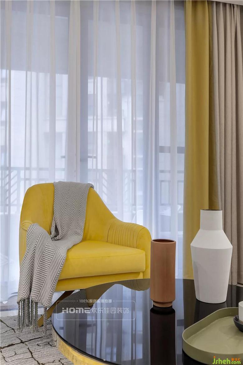 原房是淡淡的黄色,没有层次感,根据Z女士的喜好,在现有硬装色系上构建,大胆的使用明黄的软饰,线条感强的金属材质,冷酷的硬装加上柔和的软装配饰,勾勒出充盈的质感和精致的生活。