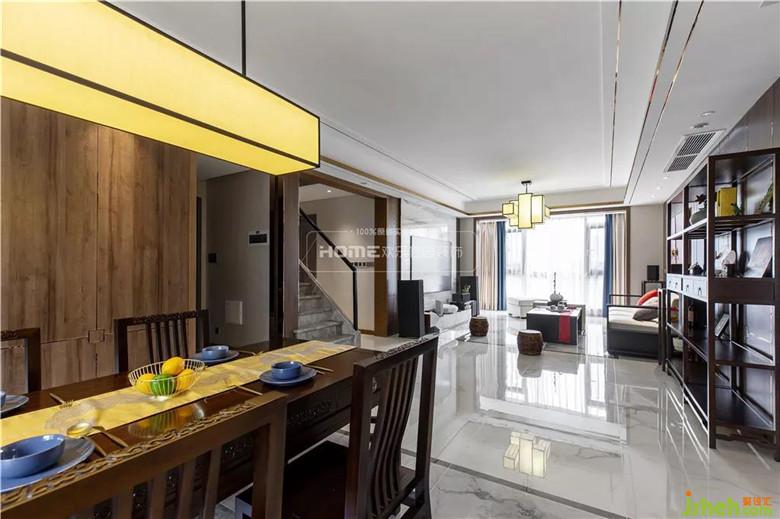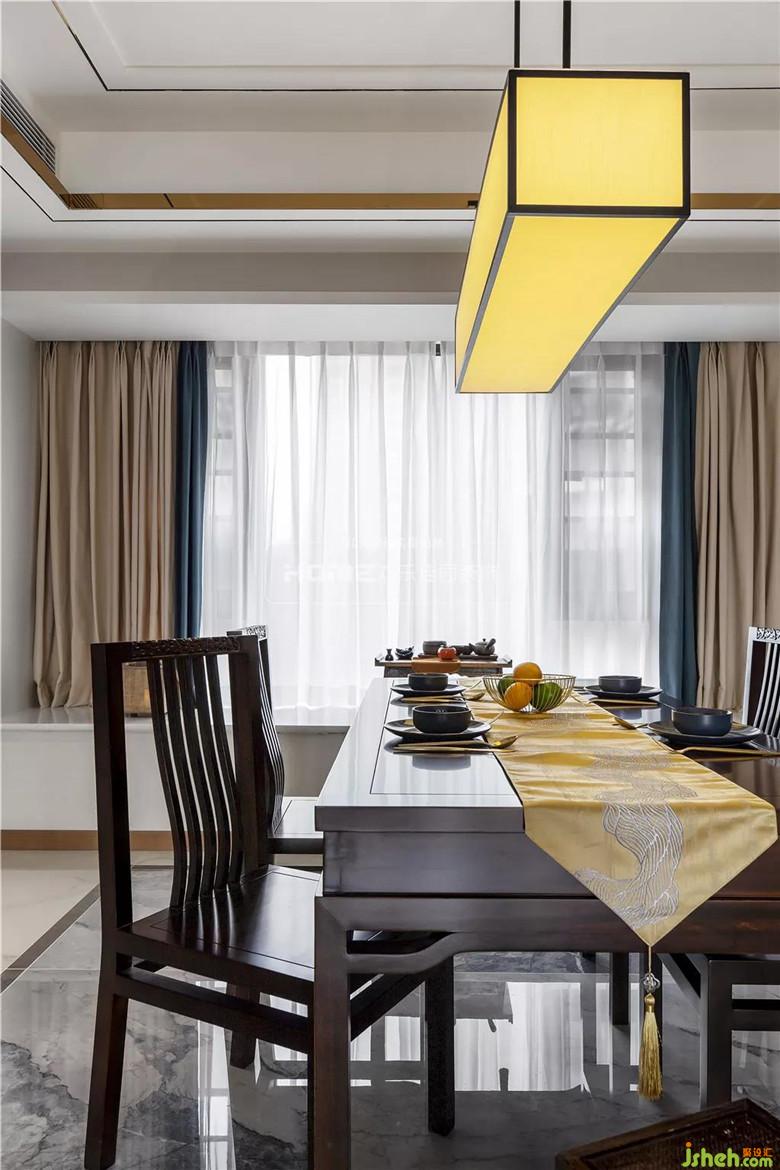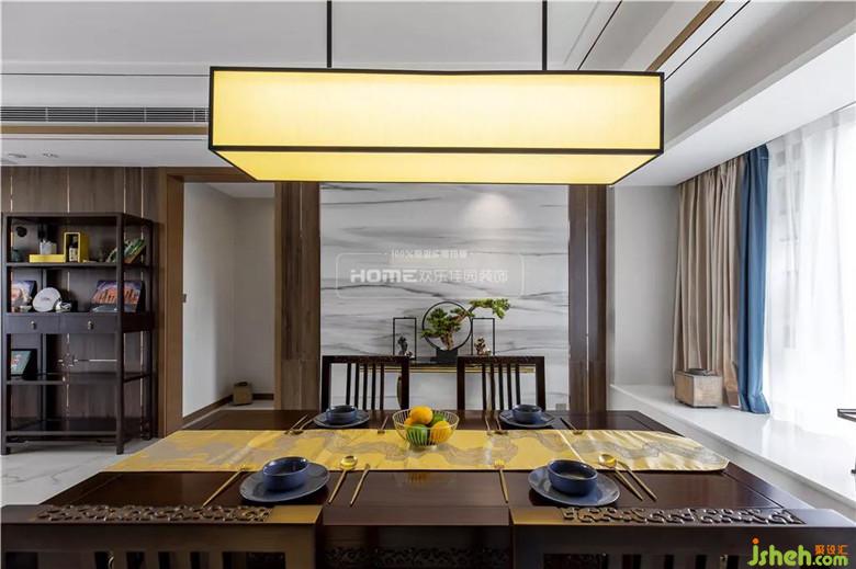 淡彩铺陈水墨,清浅相宜配色,意境空间简化成几何体块,布局结合中式的韵味和现代的简约。拼接设计的新中式布艺吊灯,如晕开的水墨般,在灯光的映照下,层次分明,意蕴尽展。