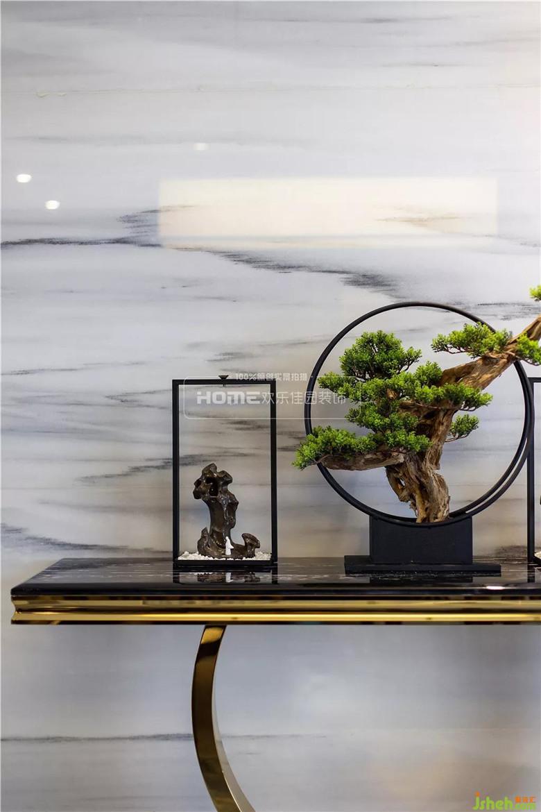 舍弃浮华,清心寡欲是这个端景台最好的诠释,独特的立体造型,婀娜卷曲的博古架上点缀着的装饰,若灵若现。在这温润的、自然的空间里,始终抵不过原生态的诱惑,只能借由艺术的陈设触摸生活的质感。