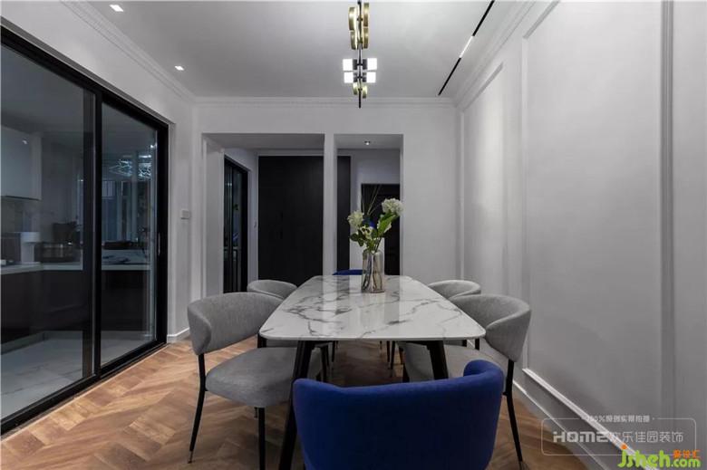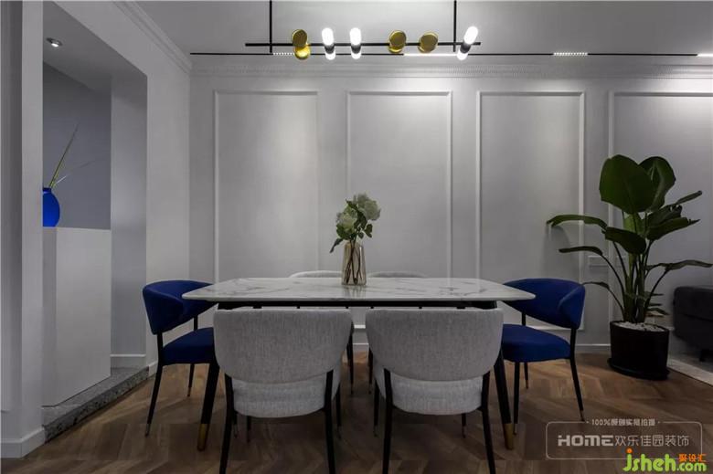 大气留白,不过分华丽装饰,这是空间应有的包容和气度,别具一格的石膏线条打造出一种流动感,寓静于动,打破空间的呆板;斑驳的大理石,透出星星点点的金属光泽,整个餐厅层次分明,方圆有道。
