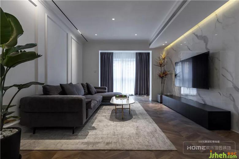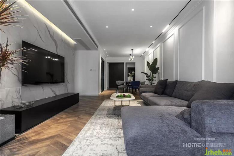 全屋无主灯设计,磁吸轨道灯+射灯的组合,提升空间亮度,拓展空间层次感,客厅背景墙无挂画设计,打破常规室内空间形态,营造旷远而深凝的意境,是思绪的升华,更是精神的自由。