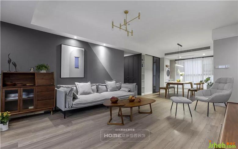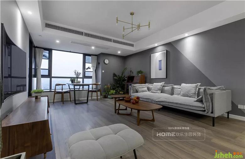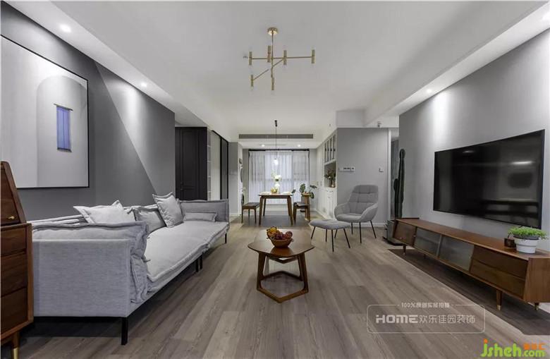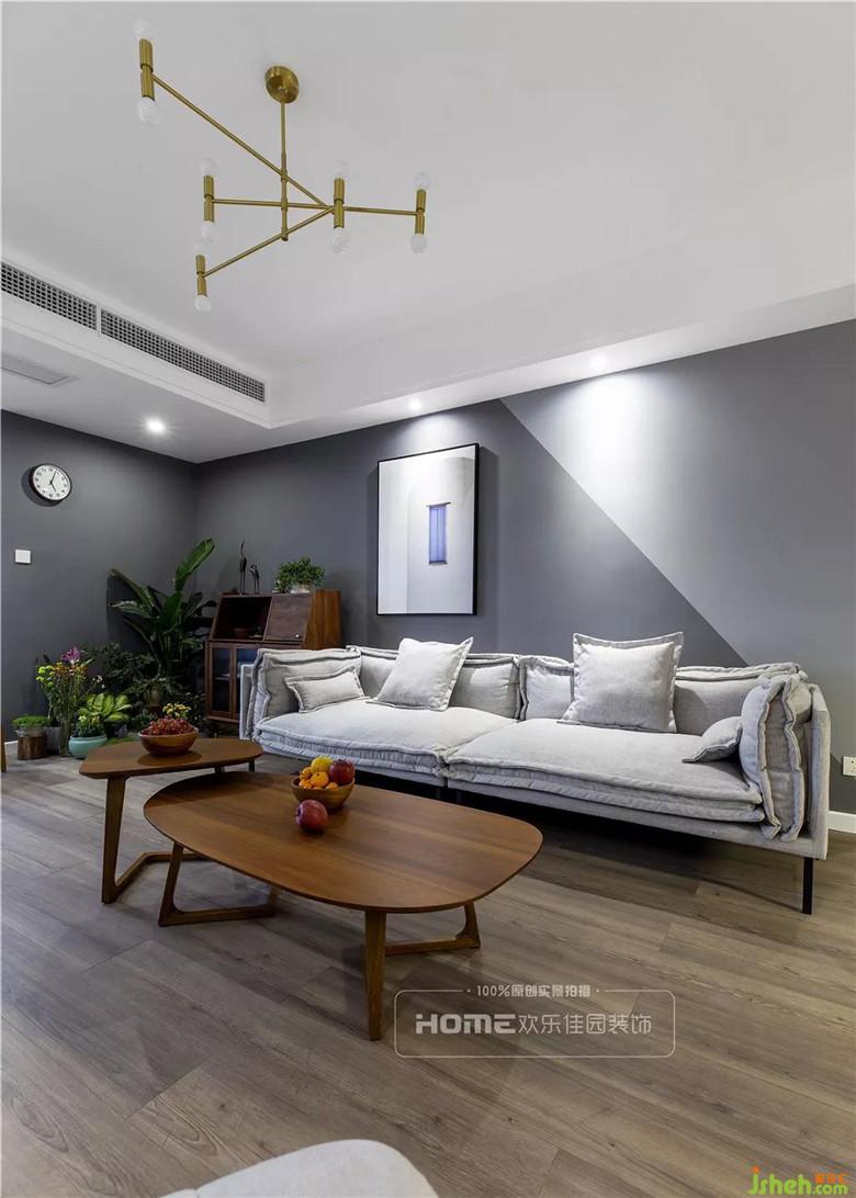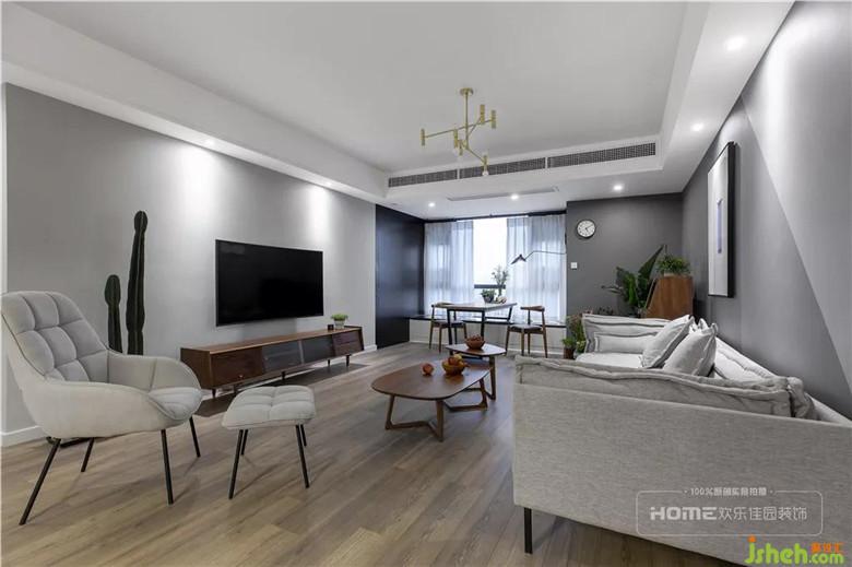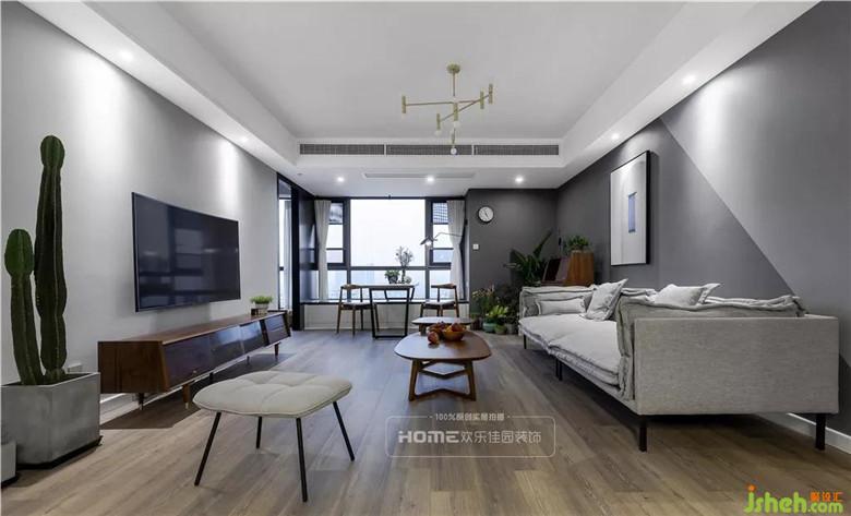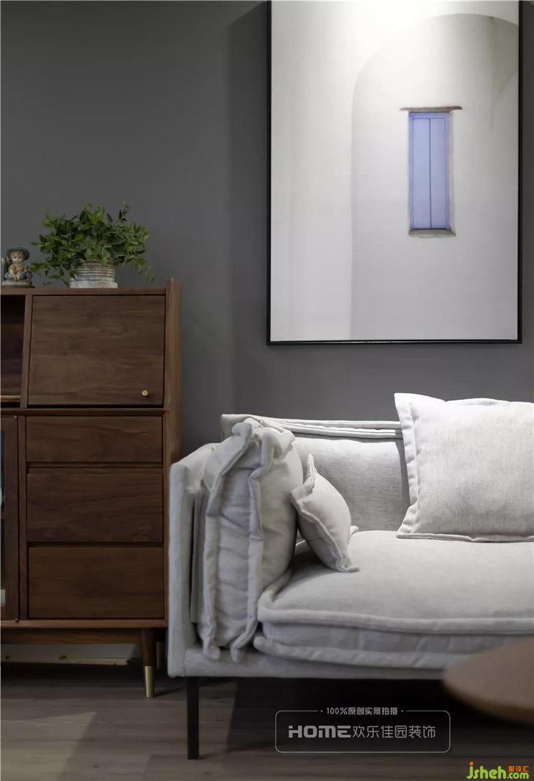 木质单品绝对是搭建北欧风的灵魂,深色系的木纹家居单品,天生自带清爽感,茶几、电视柜、边几简单的点缀客厅空间,赤脚走在地板上,沉静心绪,思维从城市烦忧中抽离,体悟难得的自然美好。