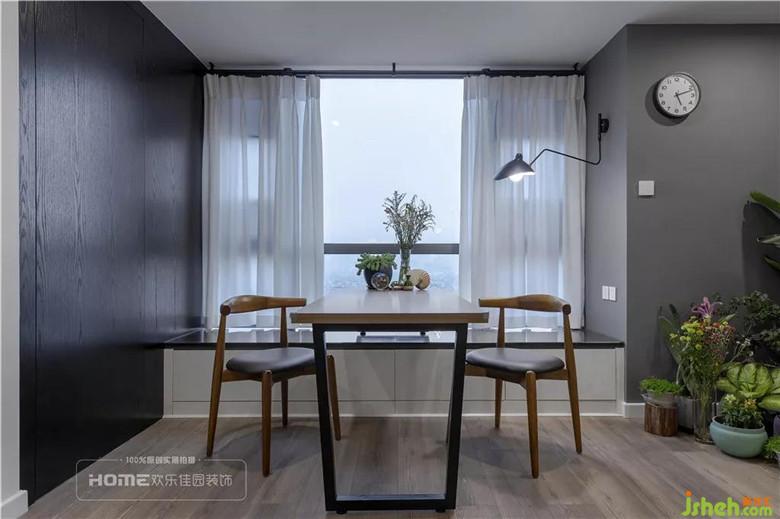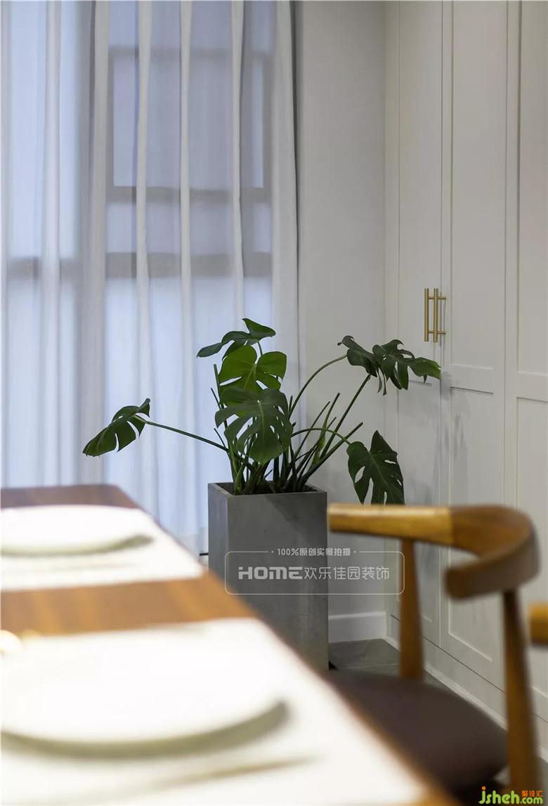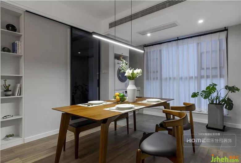 除了满足业主的储物所需,设计上还是有所偏重的,主要突出用餐功能,实木餐桌椅搭配,简洁实用,意在营造用餐的舒适和温馨之感。