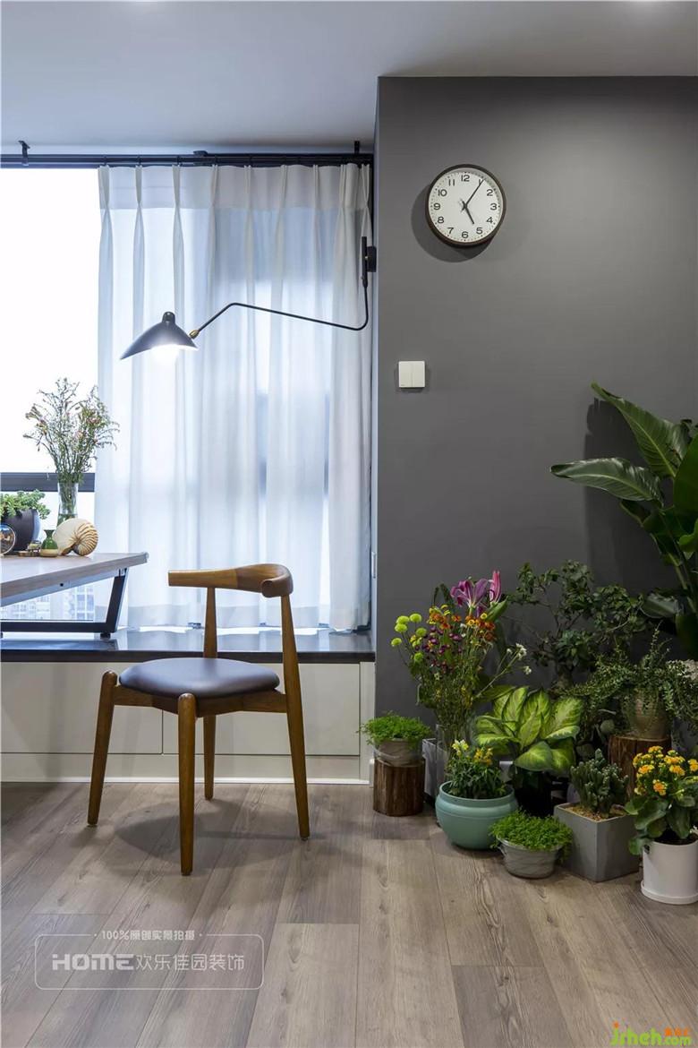 借用客厅阳台搭建的开放式书房,绿野仙踪,心灵栖息的室内桃源,纱帘轻柔地存在,无声中向自然借光、室外借景,伴随着温润的色调,缓缓沉浸在这静谧而无垠的空间,让自然与灵魂展开一场细腻而自由的对话。