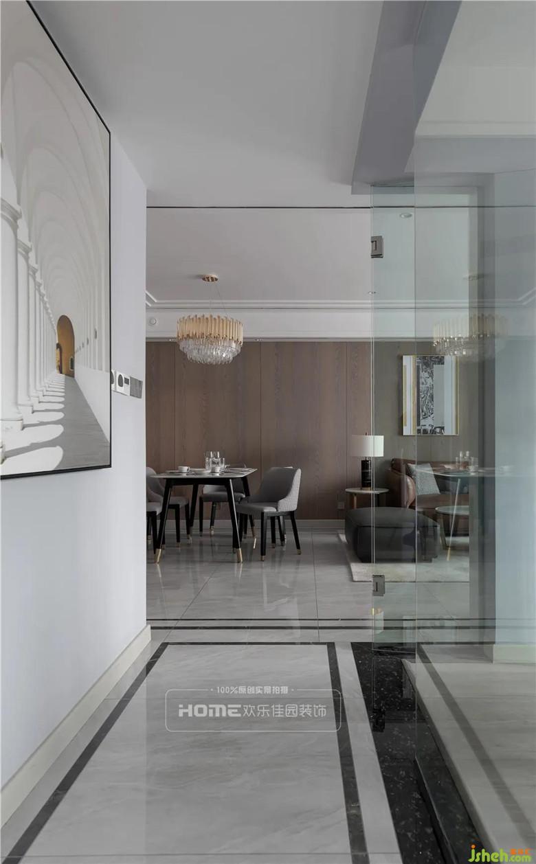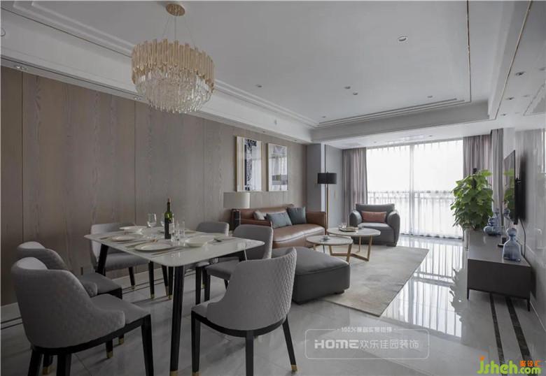 光滑的大理石餐桌,轻奢元素的吊灯,自然而简约,方寸之间将更多的可能让位于生活,奔波劳累一天的人儿卸下疲惫,轻松的坐在餐桌前和着热气腾腾的饭菜,享受着温暖的家居氛围。生活的意义就存在于这漫长的,渺小的日常生活点滴里。