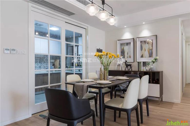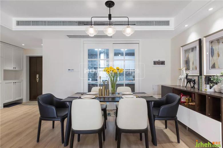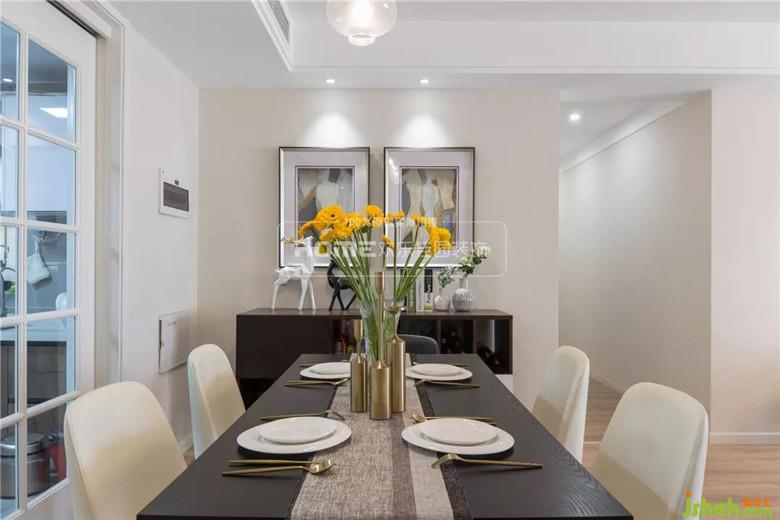 厨房、餐厅、客厅三个空间相互独立,特殊功能划分,实则连贯一体,大气凛然。