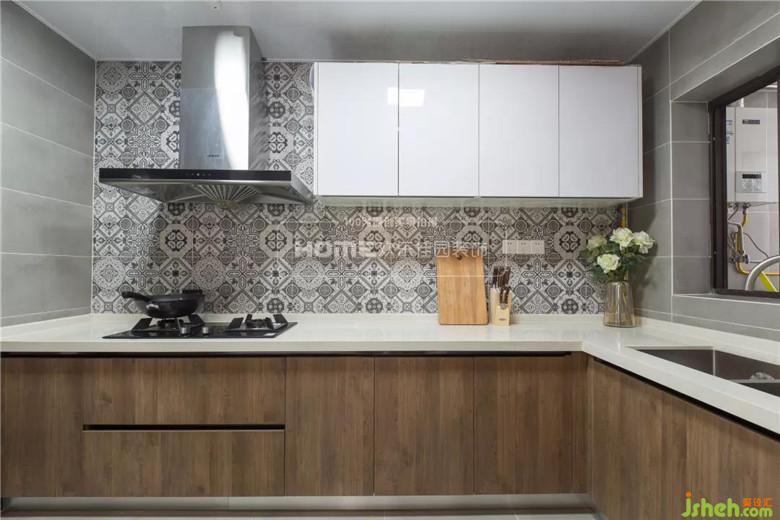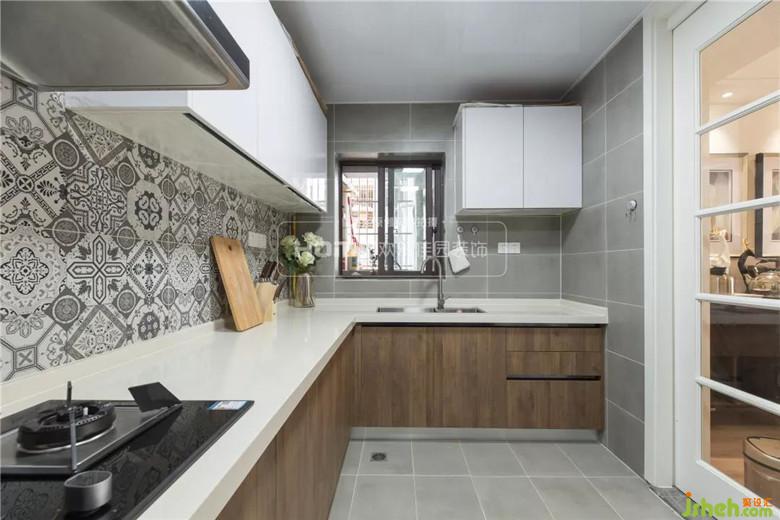 U型橱柜的设计,开通厨房与餐厅空间,利用推拉玻璃门建立了隔断,增加厨房的操作空间,在厨房灵活的走动也不怕碰到,还增大了就餐与备餐的功能性。