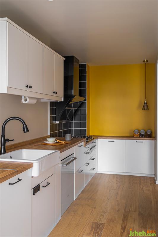根据业主的烹饪习惯,在成都家居设计中摒弃传统门槛石以及瓷砖,将客厅地板延续到厨房位置,使空间更简洁,整体性也更强。并在墙面采用专用防水漆,增加空间色彩层次。