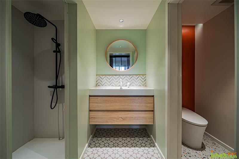 三分离卫生间,并在不同功能区采用不同的材质以及颜色搭配,满足不同功能的使用场景。