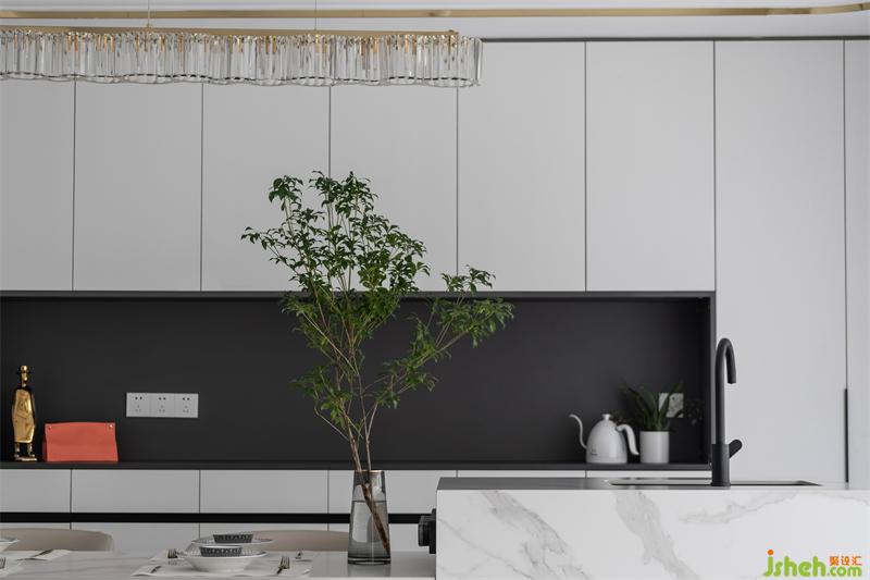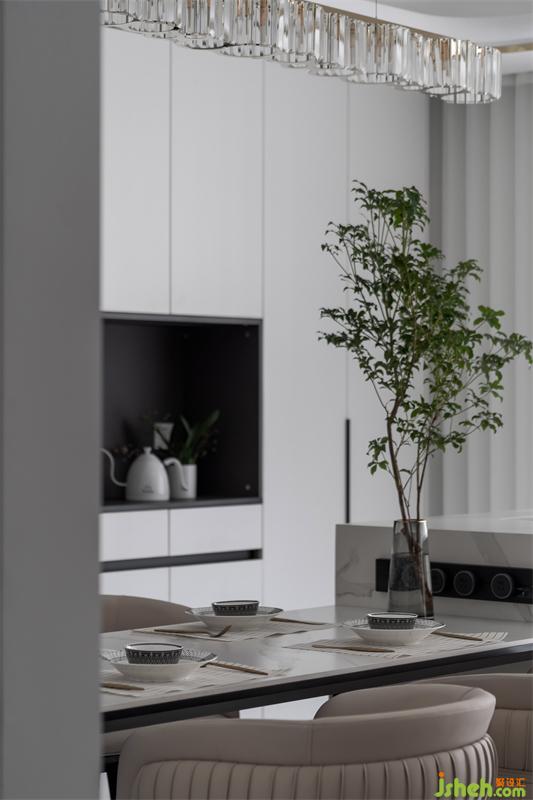 餐厅采用岛台加餐桌的设计方式;在吧台做做手工,做做烘培;不仅抚慰自己的胃,也更抚慰焦虑的心。