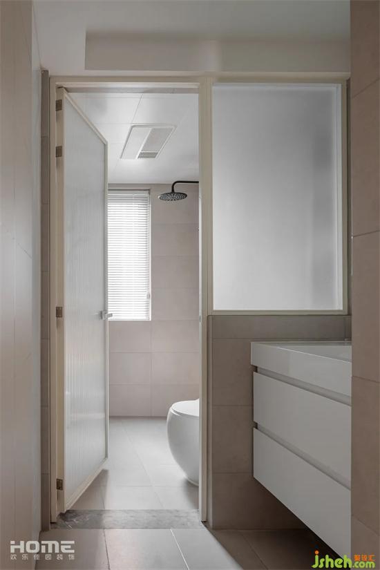家装设计将次卫生间改造成主卫,减少动线,使用起来更方便。大理石包裹出浴室空间的每个细部,镜面与玻璃材质延伸了窗户的透气感,增加了视觉面积的同时,以一种内在的奢侈对现代卫浴理念有了自己的演绎。
