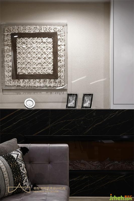 版面构成的简练书柜便于收纳,一抹跳动的火焰于冷峻里待点燃。