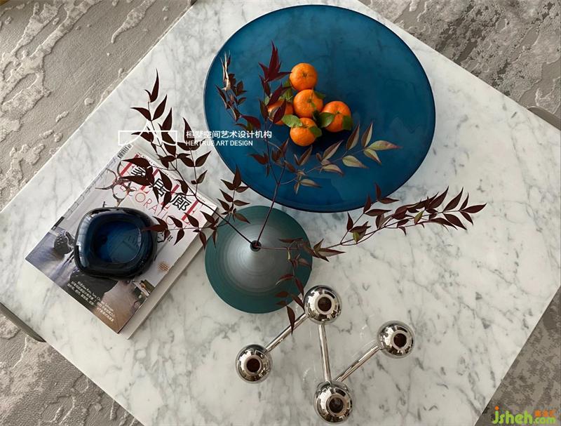 春天的白日,室外暖意洋洋、生机盎然,而室内却有一番安静的热闹。地毯温软,金色的边几,蓝色的果盘,葱茏的绿植,以一种恰到好处的热情激发着生活的乐趣。