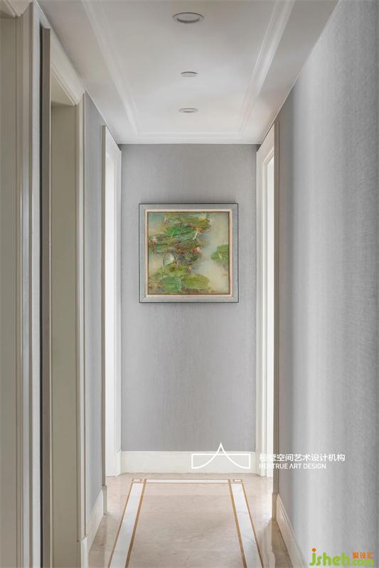 过道尽头是业主挚友16年前绘画相赠,珍藏至今,岁月变迁,但见画如面,常伴身旁。