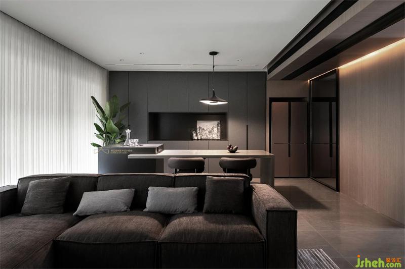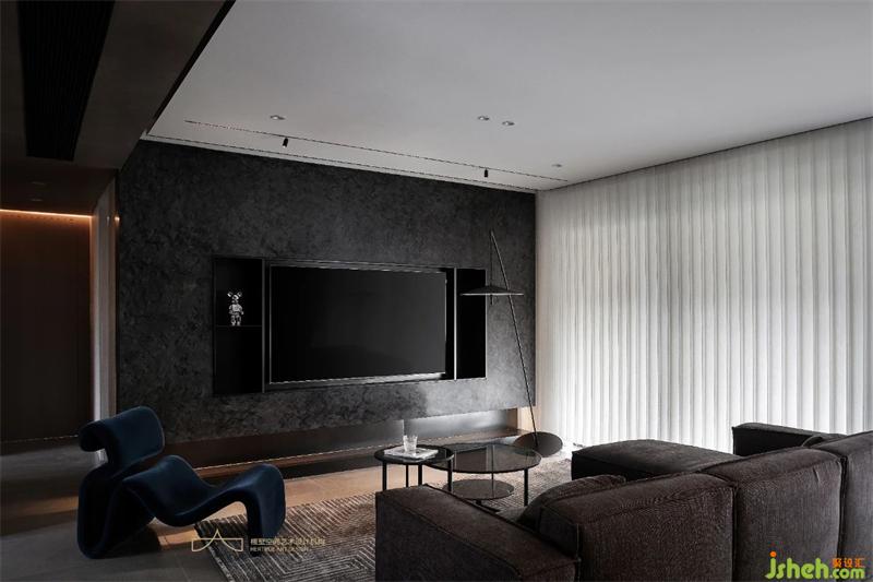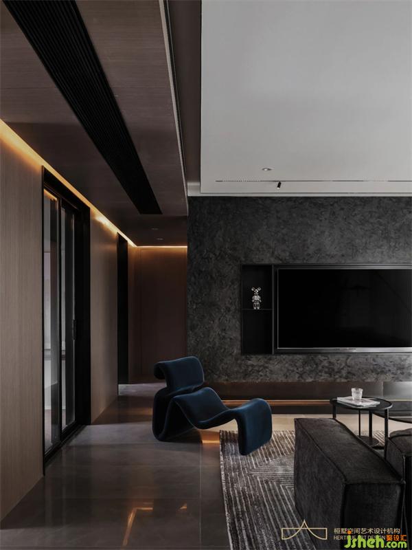 业主很喜欢较深沉的调子,在风格讨论上我们一拍即合,达到很强的共识:深沉的、暗调性的空间在材质和纹理搭配上做变化,非但不会让空间压抑,反而会让居住者更加放松,更加安静沉着。