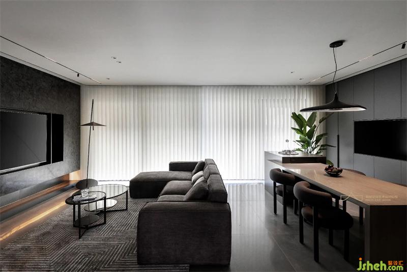 黑白灰暗调的客厅,为简约空间注入安静沉着的语言,每一件家具也都有着自己的独特微表情,恰到好处的演绎着业主对生活的期待。