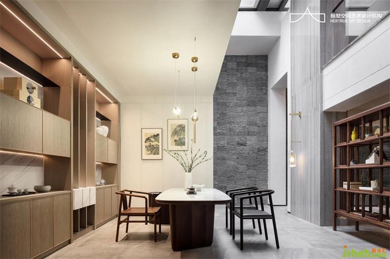 负楼层退合适距离为车库入户留出外前厅,整理过渡再入室内;解构负二负一层功能动线,调整楼梯位置于一处贯穿上下,设置电梯位置,挑空入户玄关、合理规划天井借光,将需要安静的茶室、收藏间、家庭影院置于负二层;成就入户高挑空玄关以及茶室,于青砖竹韵里一室干净明。