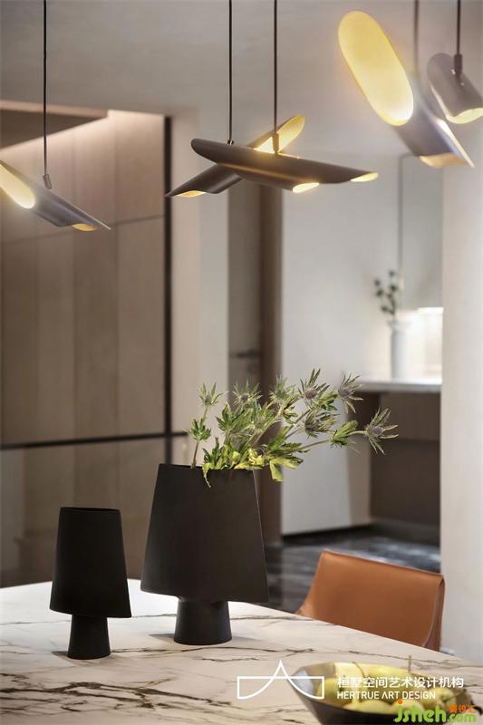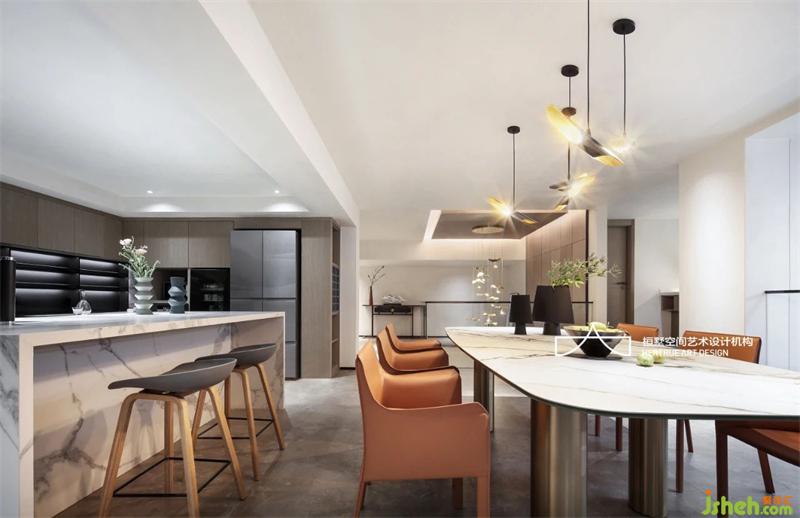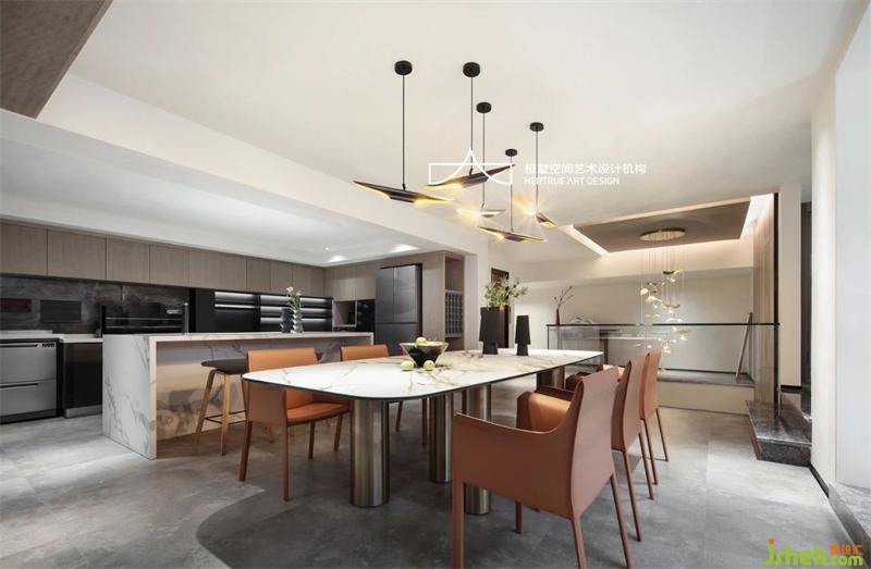 重庆别墅设计质感里透露着关于家的温暖,餐厅是现代人在家时最多时间坐在一起的,一边享受着美食、一边交谈,在充满雅趣的用餐氛围里,自然顶光倾泻而下,有竹韵为伴;
