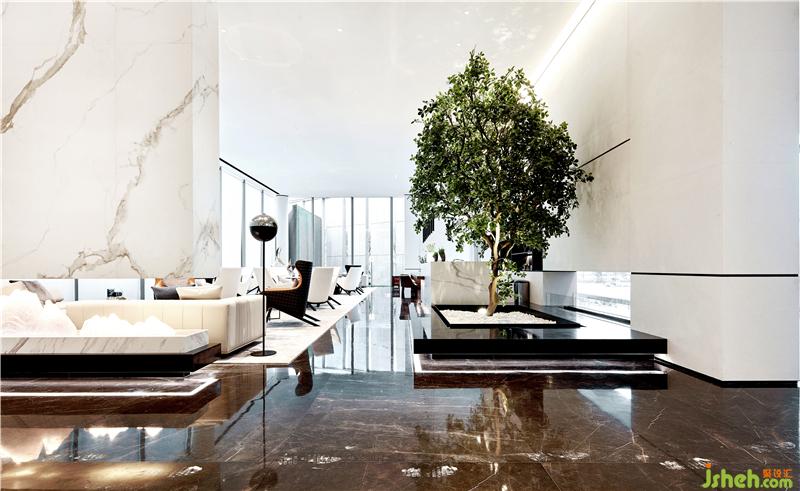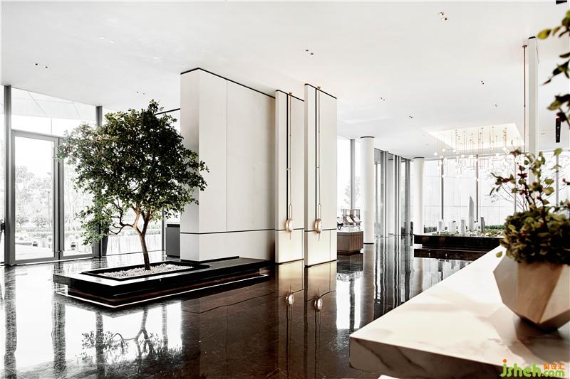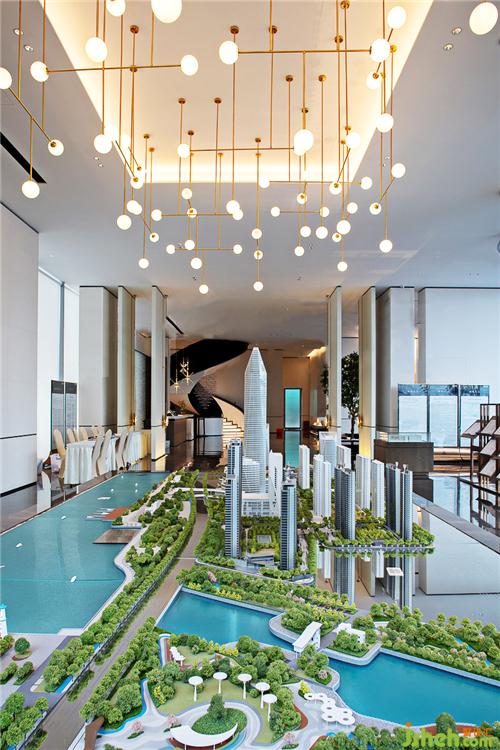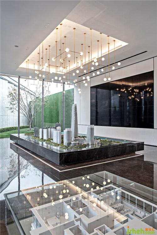 与自然的互动,让绿色融入设计,以动线轴向引导空间状态,流畅划分的线条增添现代与凌厉的高级感。利用极具创意性的灯饰调节空间的精致度,抓眼的玻璃更是抓心的设计心思。以“山和水”为元素,规划区分出各个空间,温州售楼处设计连贯性的流线带动着空间,不自觉的欣赏琢磨着设计的美妙。自然与空间融合,互相配合,为了营造更为舒适的氛围。