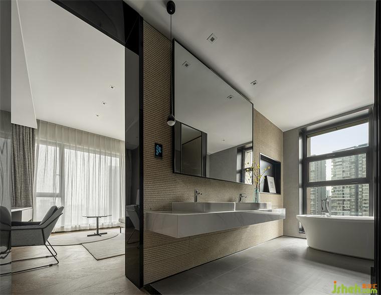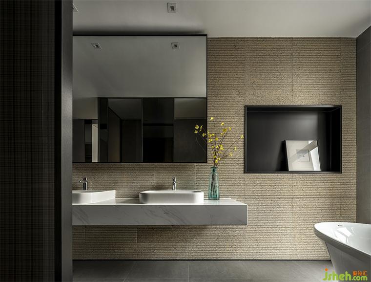 是卧室或卫浴,立面的细腻笔触总能点明空间要义,少许跳色是投入水中的石子,激起涟漪又迅速归入整体。样板房设计调整如镜面、洗手台的尺度使之更易使用,将功能淋漓尽致地实现,结果本身往往已接近艺术。