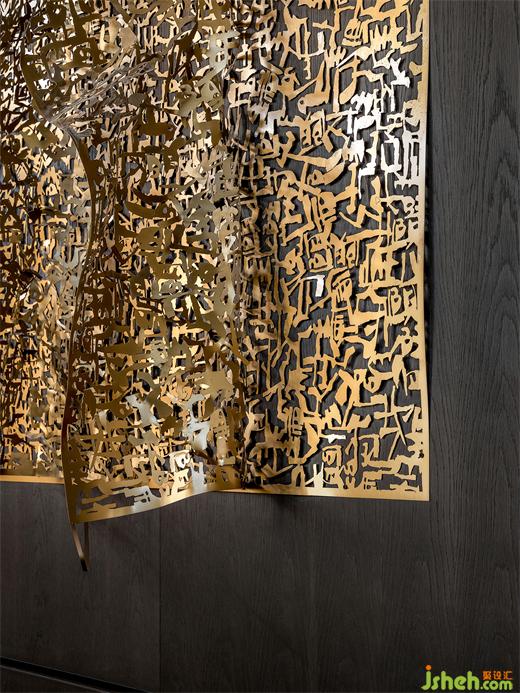 提取“颐瑞府”汉字中的偏旁部首作为拆解元素,艺术中心设计以解构主义的手法用当代的设计语言,重塑了金缕玉衣。
