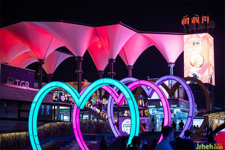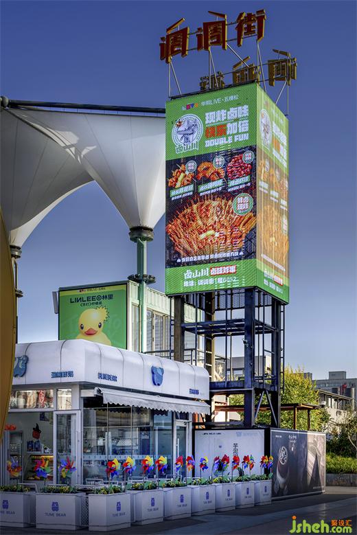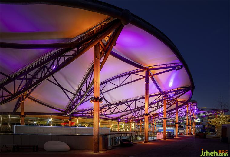 巨大的张拉膜结构好似漂浮在半空中的莲花,渲染出调调街夜晚的奇幻色彩。