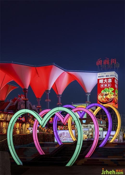 爱情广场赋予了商业空间情感与温度。温暖的光晕柔和洒下,人们置身光影编织的爱情隧道。人性化的装置场景打造爱与连接的情感汇聚点,层叠交织出浓浓的浪漫氛围。