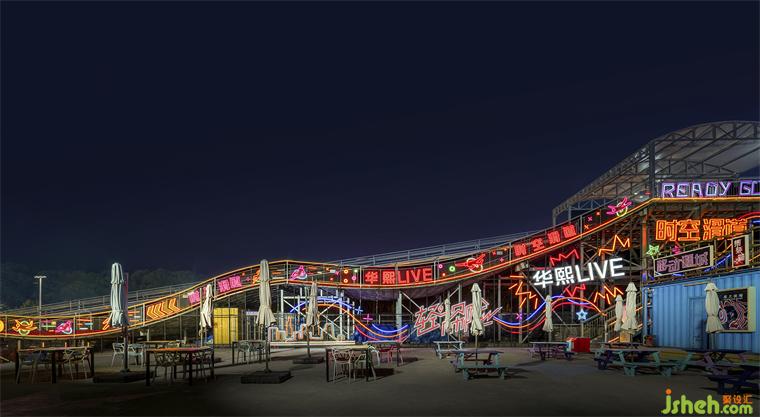 集趣味与挑战于一体的探险乐园邀请着人们感受速度与激情的双重快感。轻探险·时空滑道以动静结合、彩色灯光的对比,为年轻人创造了释放能量和挑战自我的场所。霓虹灯带勾勒出滑道流畅的结构曲线,仿佛时光隧道引领人们进入一个充满未知与探索的世界。