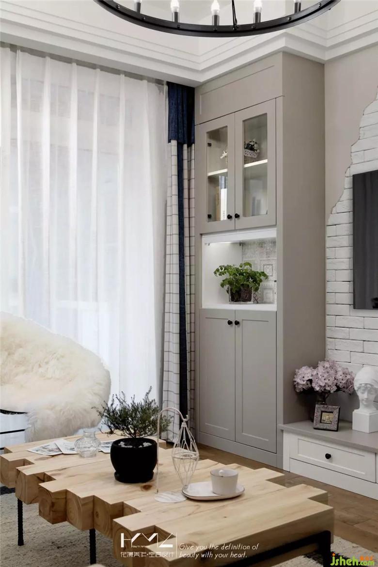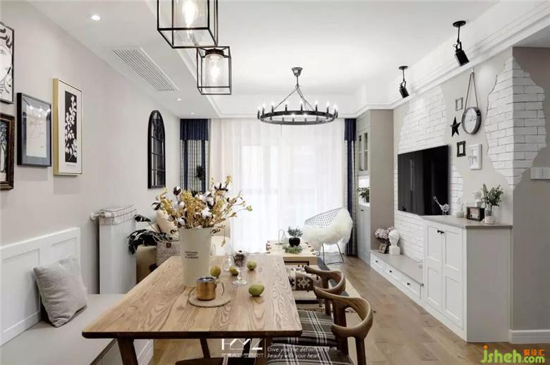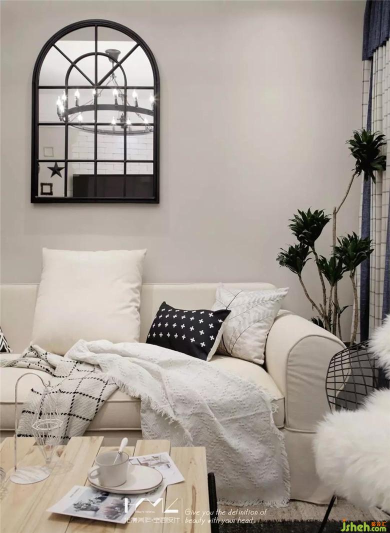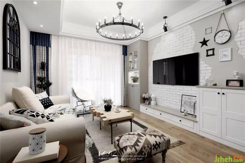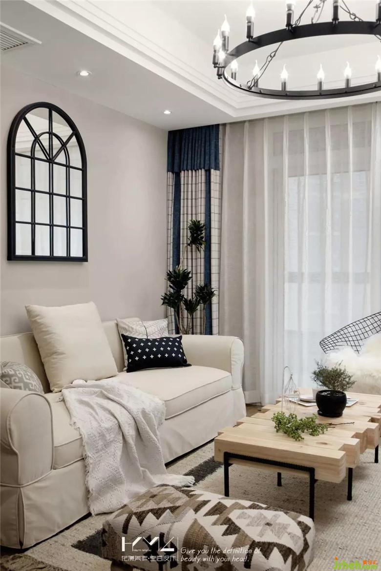 米灰色的墙面,配上同系列浅色系的沙发,给人一种融入感,整体感,使得整个客厅丰富但又不显的臃肿,黑框银镜、黑框架藤椅、黑色钢管茶几脚腿、黑色圆框蜡烛灯饰,各种黑色铁艺在整体中点缀,装修公司让原本慵懒的美式空间多了一份休闲工业味的混搭。