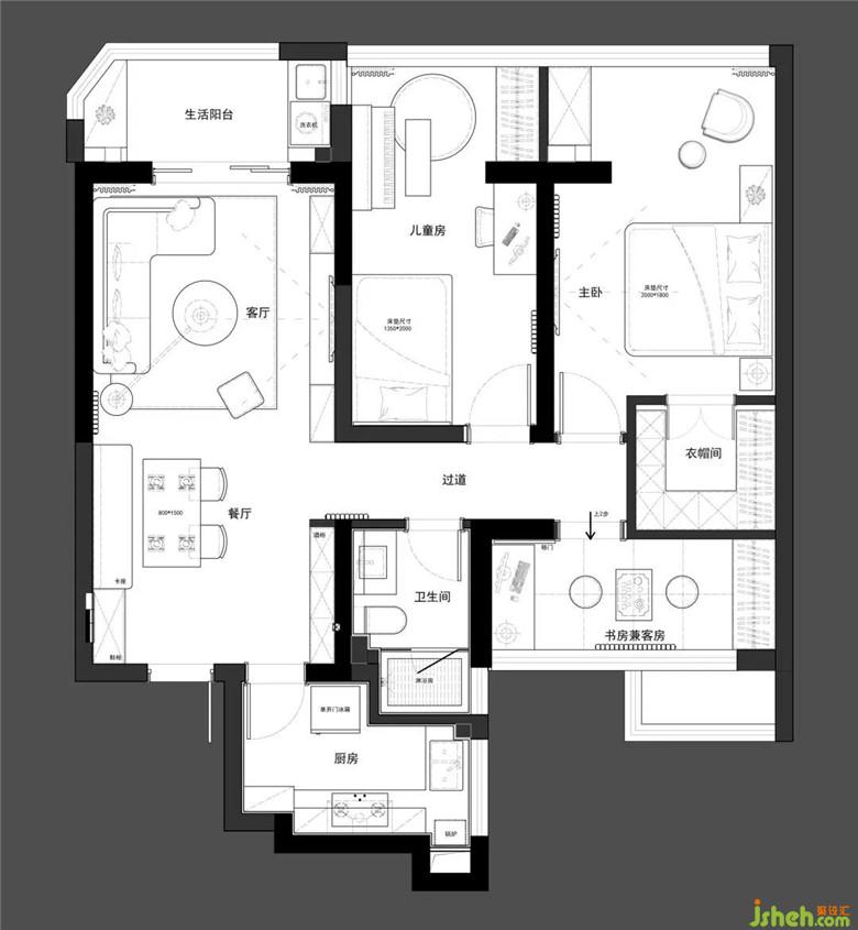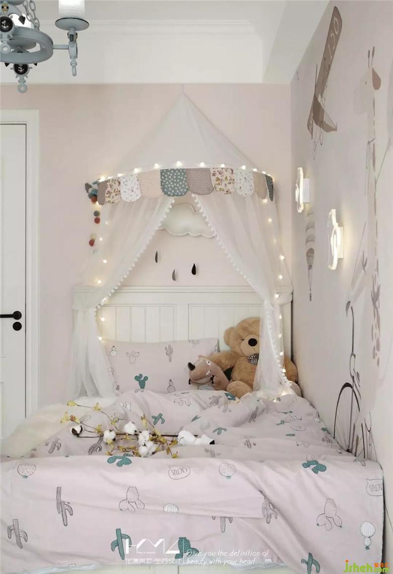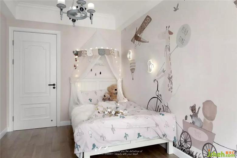 房主人的小公主还小,公主房并没有给予过多的装饰,简单的卡通壁画,可爱的小壁灯,给小公主的黑夜营造着安全感。等小公主长大些,装修公司将房间留有很多空间,可以开发小公主的设计思想,孩子的想法总是那么可爱。