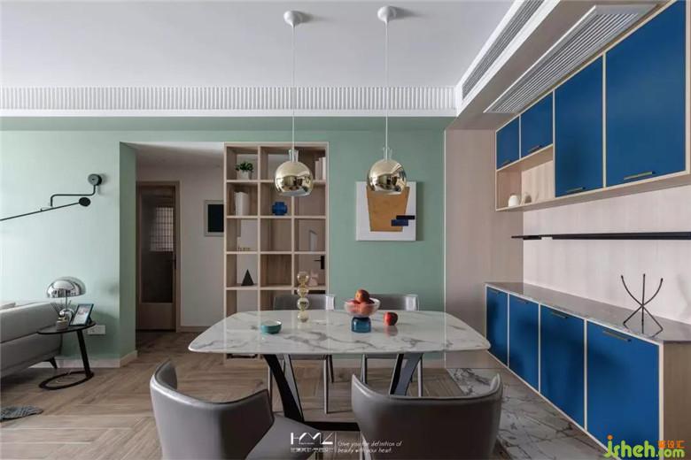 跳跃的蓝色餐边柜,颜值与实用兼具