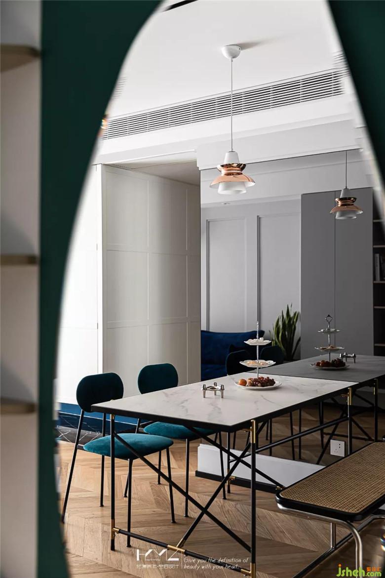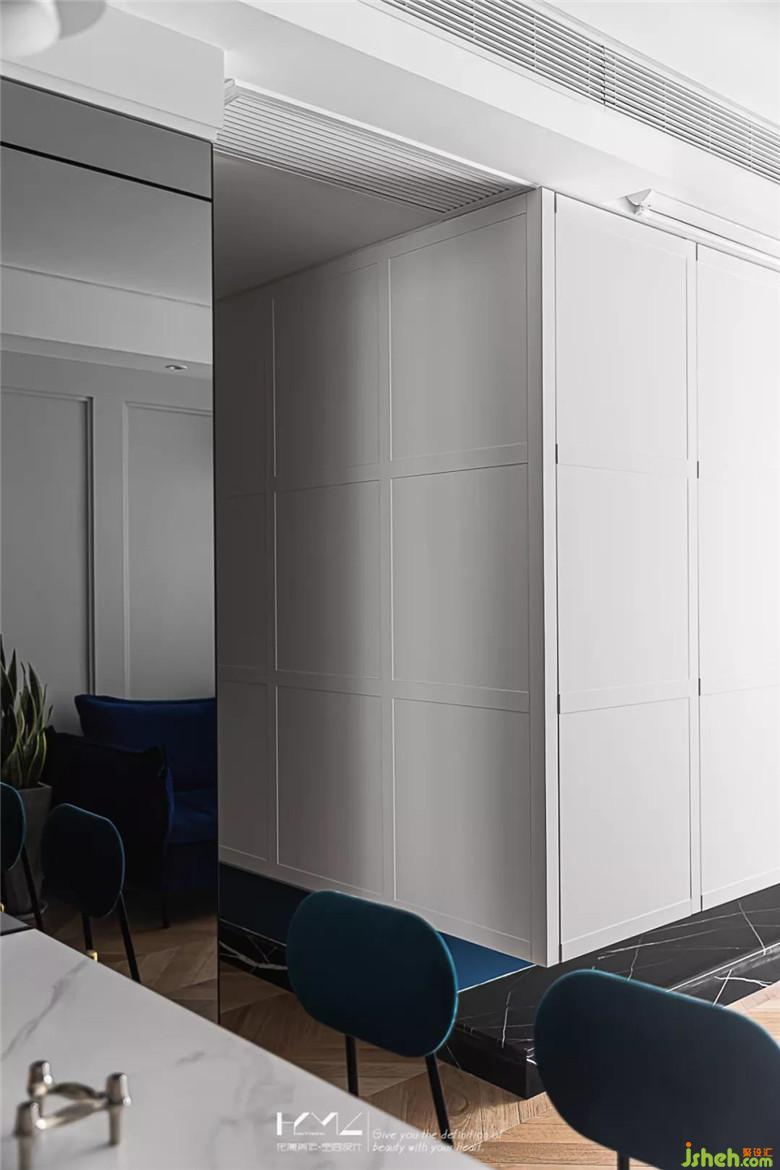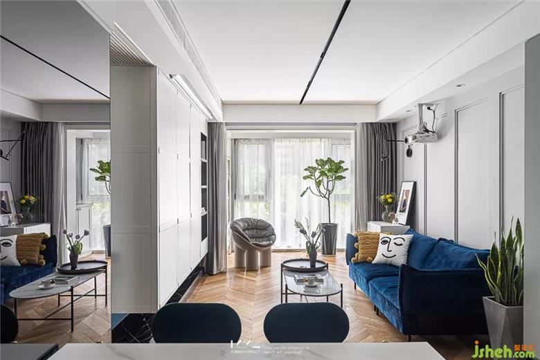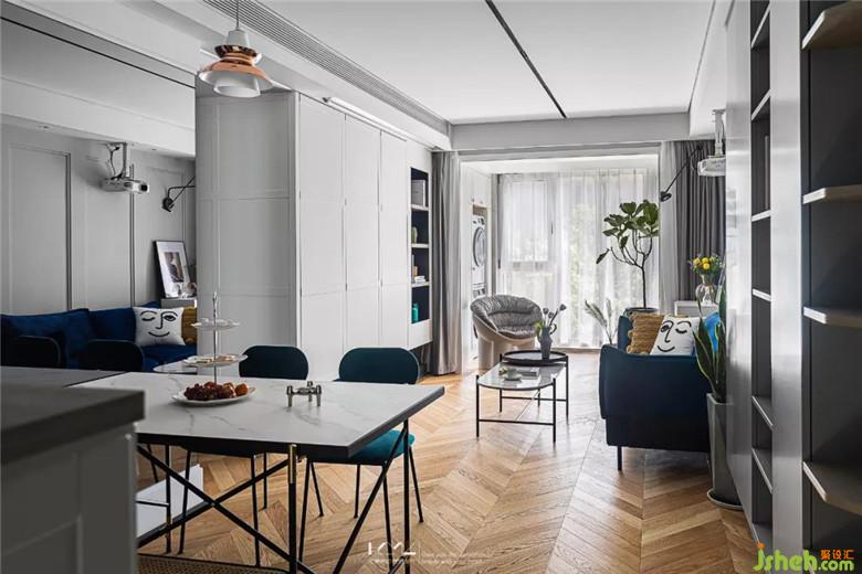the light color is metope and fishbone floor, the space is transparent and elegant
