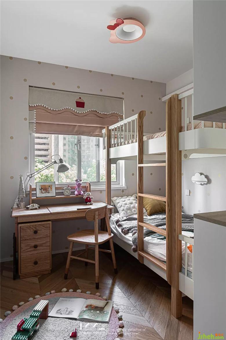 成品高低床、书桌和衣帽柜,小小的空间基本满足孩子们目前的需求
