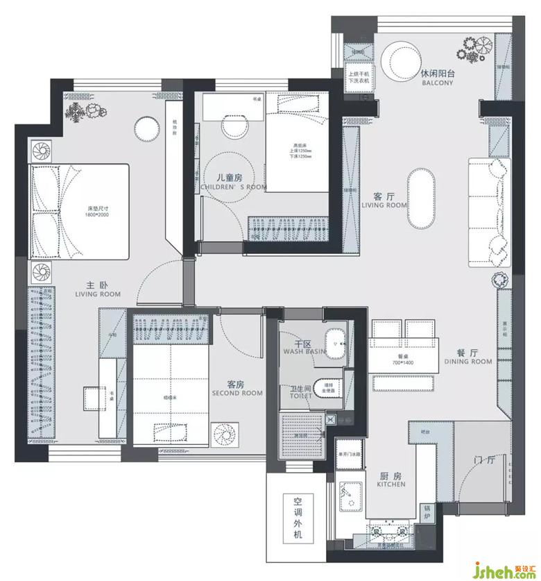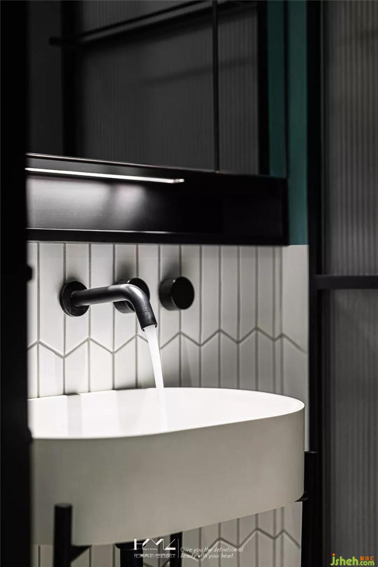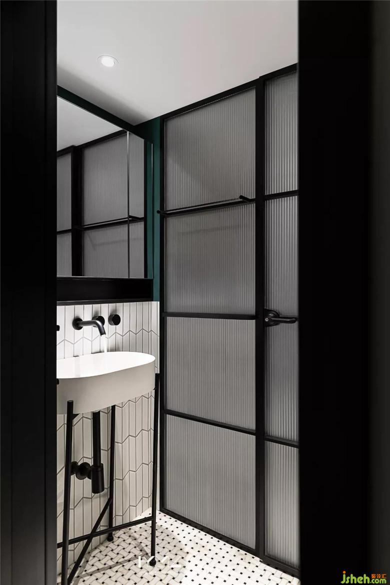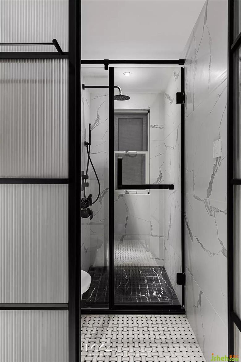 干湿分离,选用黑色金属门框及移门,更显精致现代