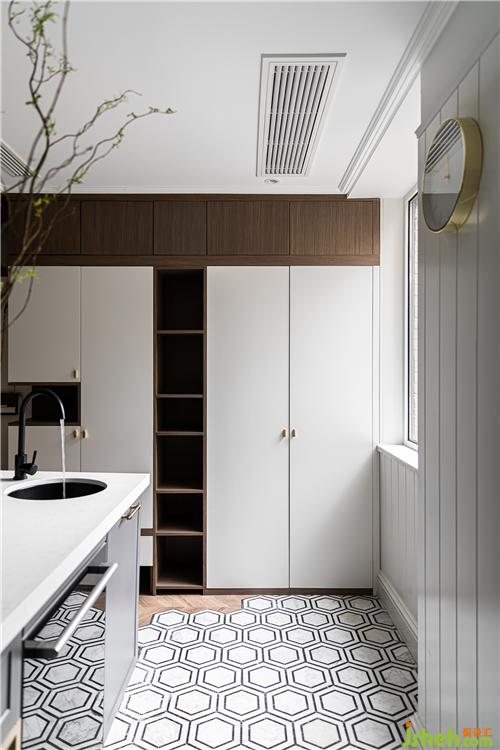 搭配胡桃色地板,宁静优雅的空间氛围呼之欲出