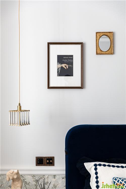 墙面饰品与吊灯形成递增的构图组合