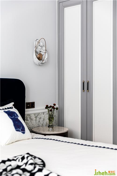 Wardrobe door gray and white match, and the color of the guest dining room is unified