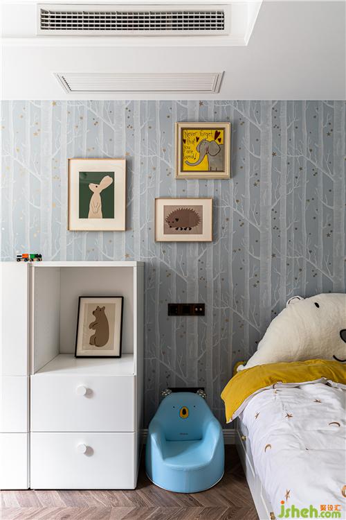 儿童房窗帘、壁纸、床品的搭配尽显童趣