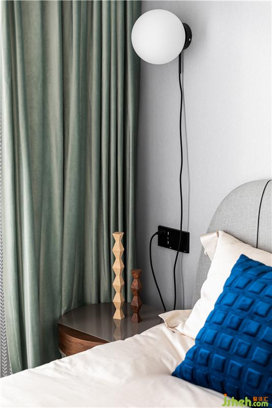 作为二宝将来的房间,现暂时作为客房功能使用,为未来预留更多可能,以便更好的为他们服务。杭州家居装修设计手法化繁从简,非对称手法的娴熟运用,点画布置衬景,淡蓝色的绒布帘为空间增添了几分柔美。