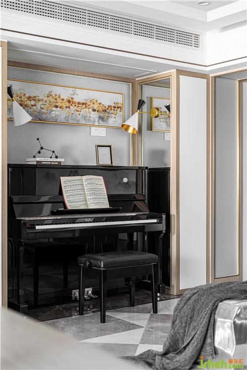 孩子的钢琴,落在了过道的凹陷位置,不影响正常的行动动线.