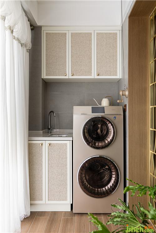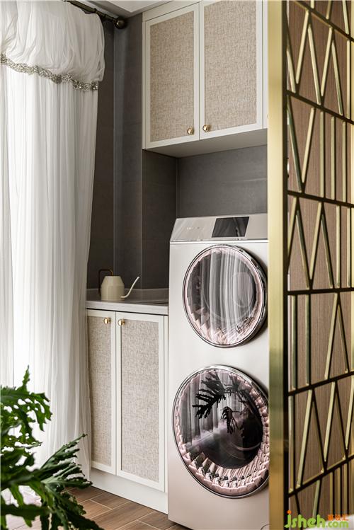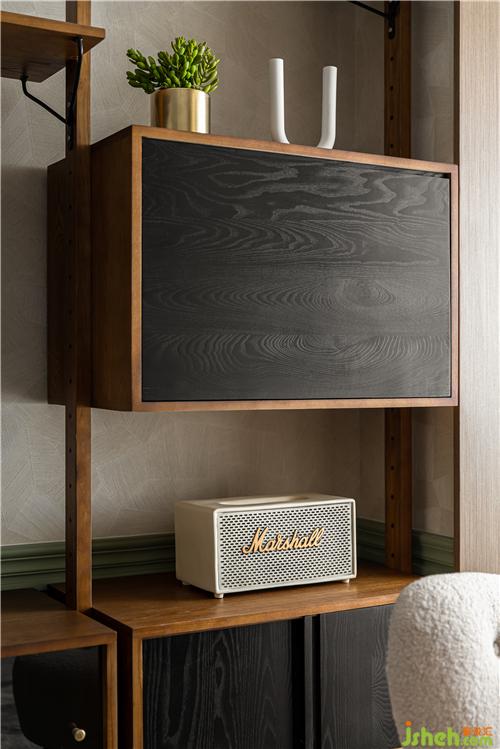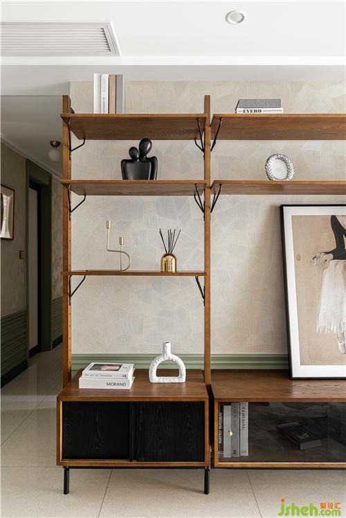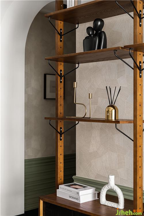 编织纹柜门跟护墙墙裙材质统一,细腻而又柔和.