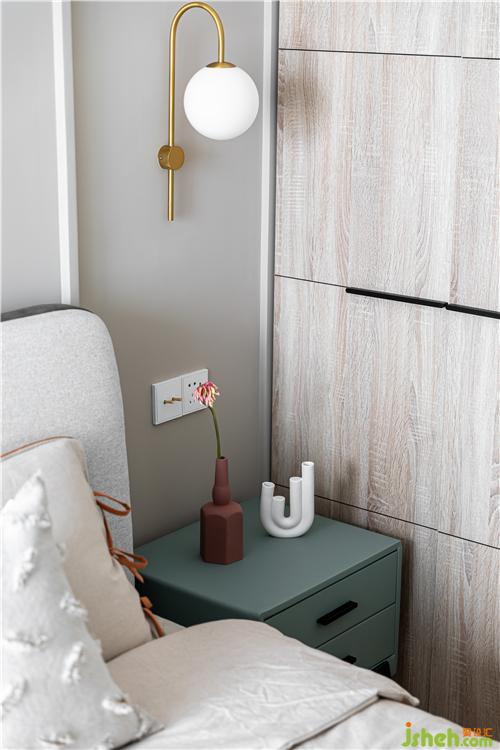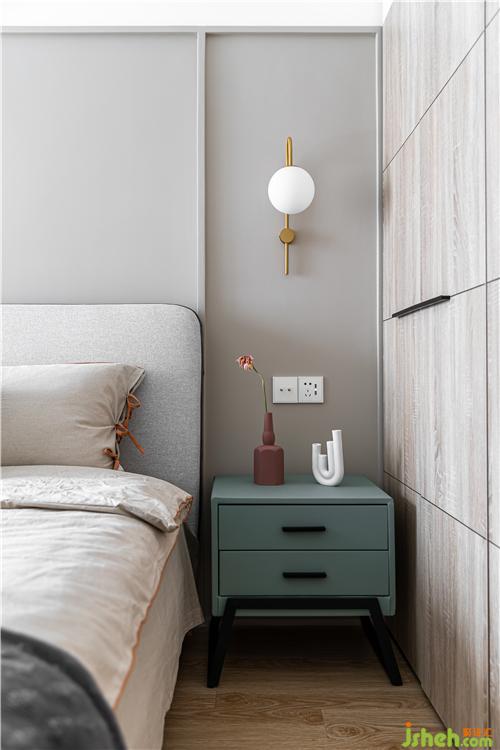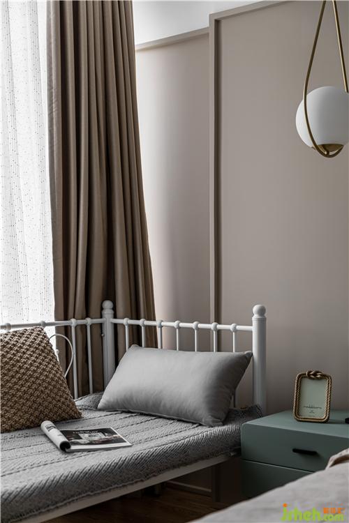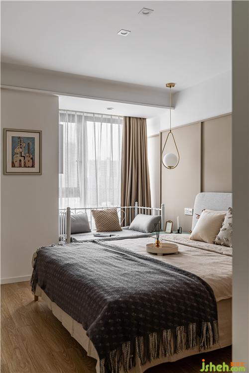 All kinds of similar colors in the bedroom, bed background, bed products, wooden cabinet doors, brown curtains. Let different textures balance each other, make the space neat and comfortable to bring the beauty of simple elegance and indifference.