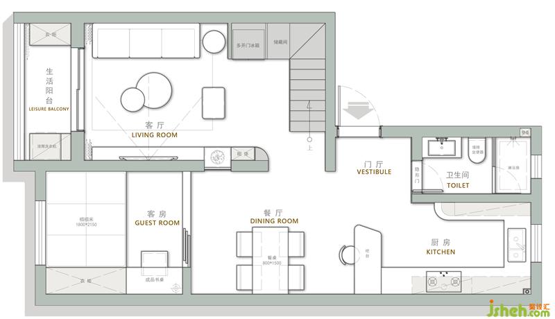3. 厨房开放,模糊界限,增加各个空间的互动性.