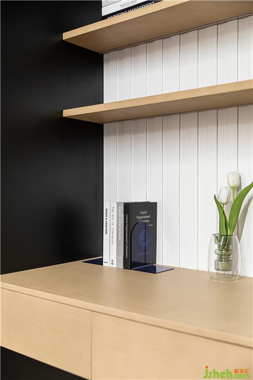 书桌黑色边框内部搭配白色栅格背板,显得书桌整齐而又生动.